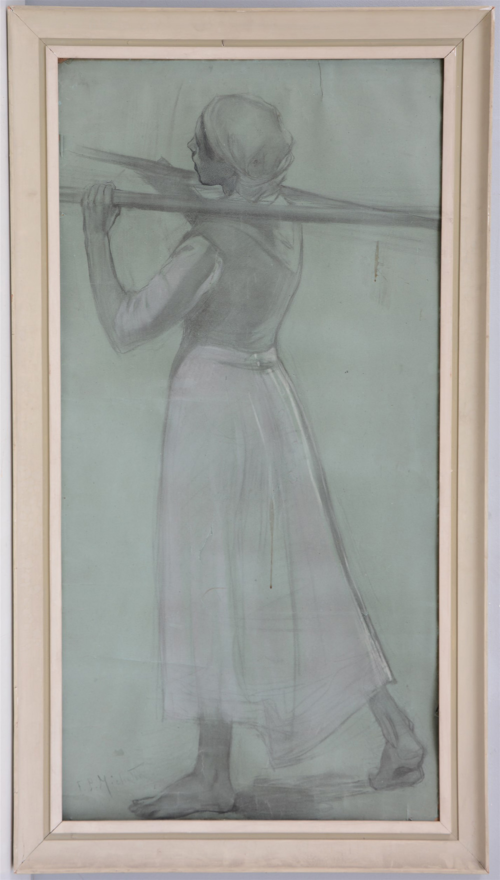 F.P.Michetti "Pastorella" tecnica mista su carta (cm 99x49) Firmato in basso a sinistra. In cornice (Gravi difetti)