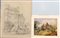 Lotto composto da sette acquerelli e due disegni inglesi (difetti)