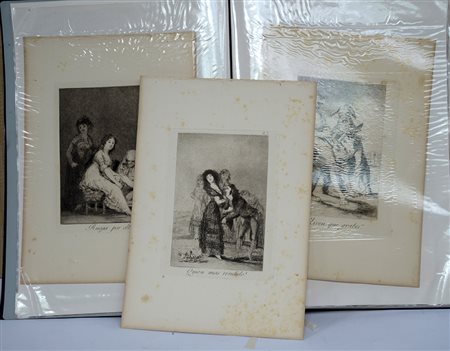 Cartella contenente numerose incisioni di diversa epoca e autore tra i quali: Goya, Ruega por ella - Miren Que Grabes - Quien màs rendido? (difetti)