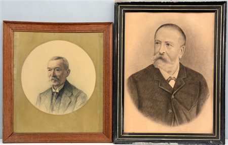 Lotto di due disegni a matita raffiguranti ritratti maschili, autori e misure...