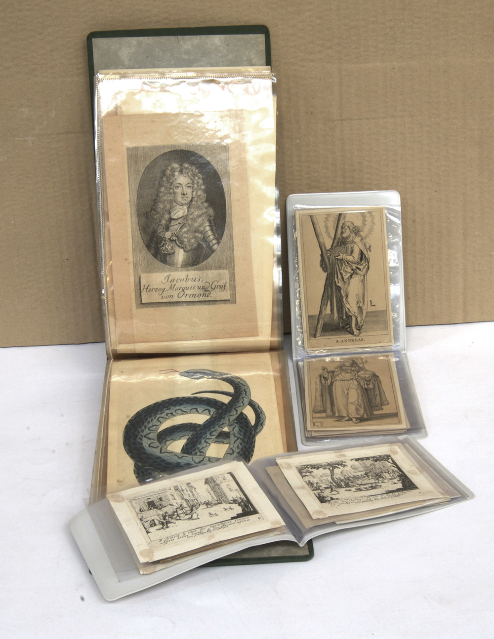 Lotto composto da tre album di misure diverse misure contenenti numerosi incisioni tra le quali opere di Della Bella, Callot e altri
