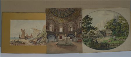 Scuola del sec. XIX. Tre acquerelli di diversi autori