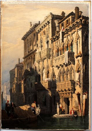 Scuola del secolo XIX "Scorcio veneziano" acquerello su carta (cm 43x29)...