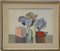 “Natura morta con vasi, fiori e figure geometriche” olio su cartone (cm 40x50) firmato in basso a destra, in cornice (lievi difetti)