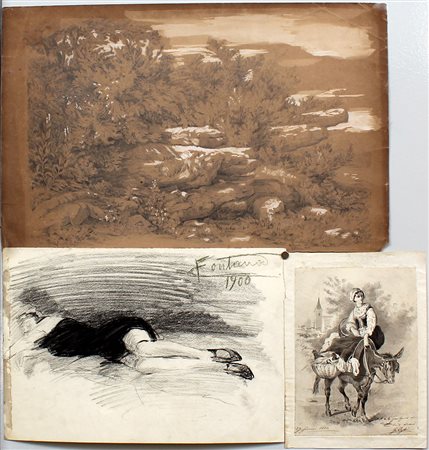Lotto composto da tre disegni del secolo XIX di autori diversi