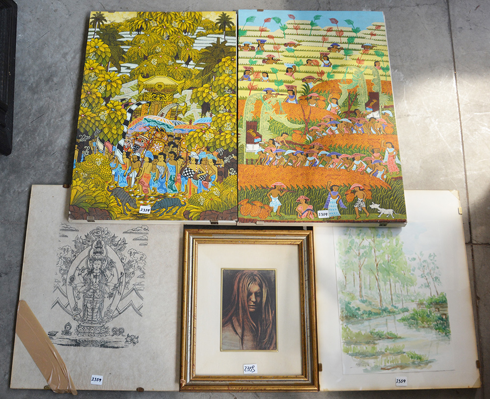 Lotto di cinque quadri di soggetti, autori e dimensioni differenti (difetti)