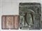 Lotto composto da un altorilievo in ceramica raffigurante L’Annunciazione (cm 55x46) e un trittico in rame sbalzato raffigurante “La Madonna in Maestà tra Santi” (cm 29x35) (difetti)