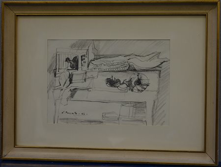 “Natura morta” 1965, disegno (cm 22x32), firmato e datato in basso a sinistra in cornice (difetti)