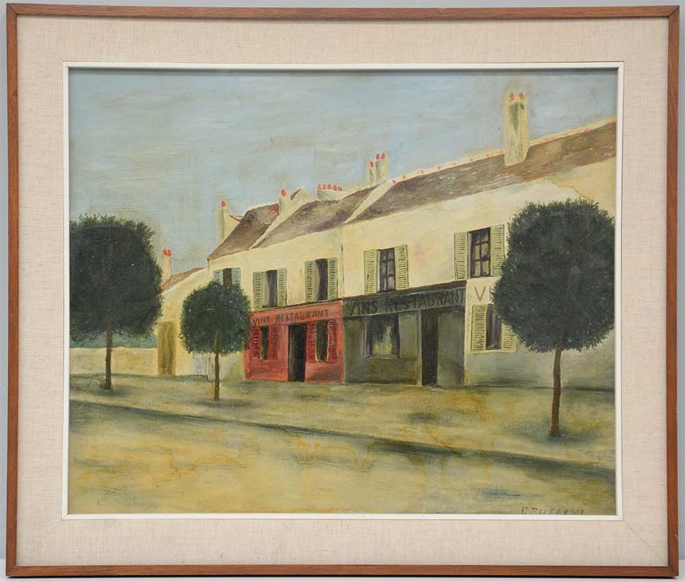 “Vins restaurant” olio su tela (cm 50x60) firmato in basso a destra, in cornice (lievi difetti)