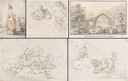 Lotto composto da cinque frai disegni e tecniche miste dei secoli XVIII e XIX...