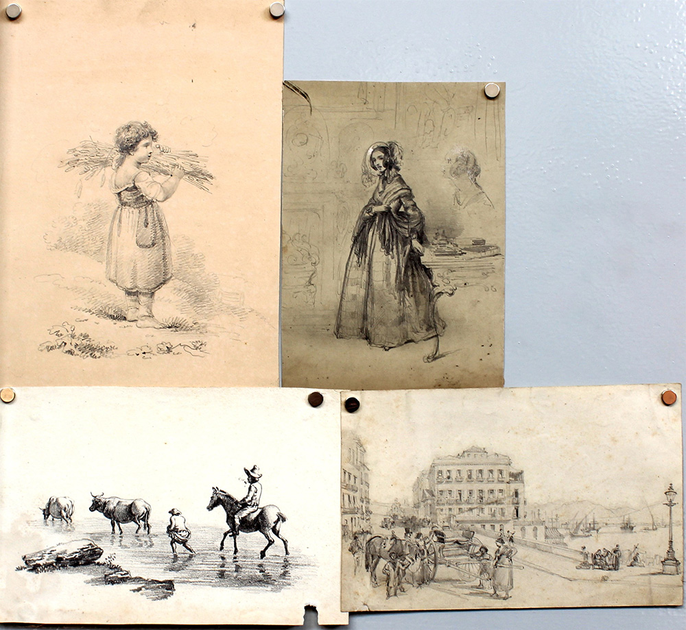 Lotto composto da otto fra disegni e tecniche miste di secolo XIX (difetti)
