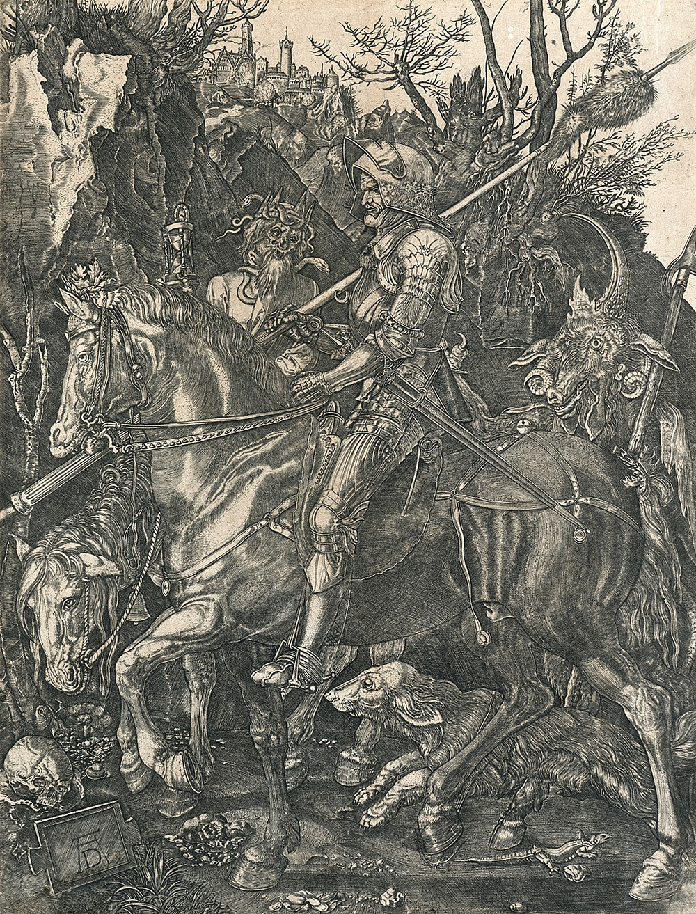 Da Durer ''Il cavaliere, la morte e il diavolo'' riproduzione (mm 245x188)