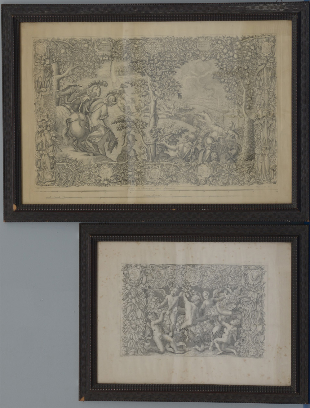 Lotto di due incisioni dall'antico, misure diverse, in cornici (difetti)