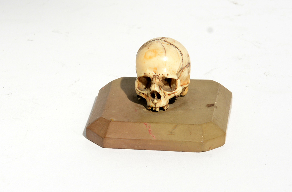 Piccola scultura in avorio raffigurante un teschio (h cm 2,5) (lievi difetti)