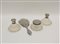 Set da toilette sbalzato composto da uno specchio a mano e tre contenitori in vetro con montature in argento (lievi difetti)