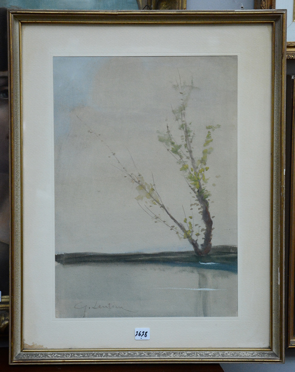 G. Lentini "Paesaggio lacustre" acquerello e tempera su carta (cm 41x29)...