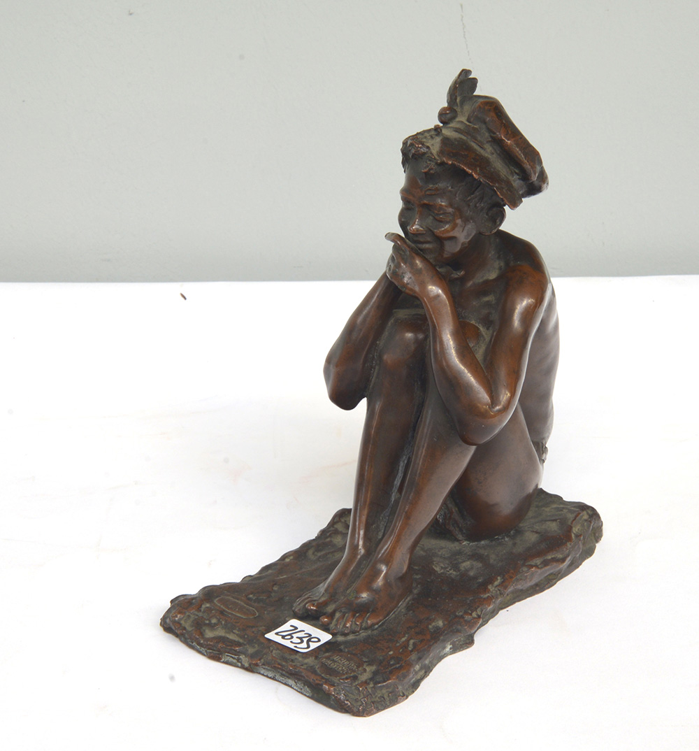 "Ragazzo seduto" scultura in bronzo (h cm 21,5) Firmata alla base, timbro della fonderia, Napoli e dei diritti d'autore