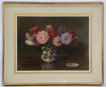 Salvatore Corvaja (Licata (AG) 1872 - Milano 1962)"Vaso con fiori e mozziconi...