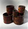 Serie di cinque contenitori di manifattura orientale in legno dipinto (h max 23) (difetti)