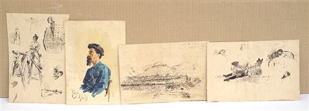Scuola del sec. XIX. Gruppo di quattro studi ad acquarello e china su carta (misure diverse)