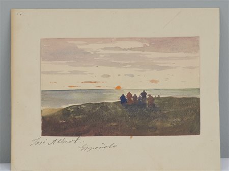 Josè Albert "Paesaggio al tramonto" acquerello su carta (cm 11,5x18,5) iscritto su cartoncino