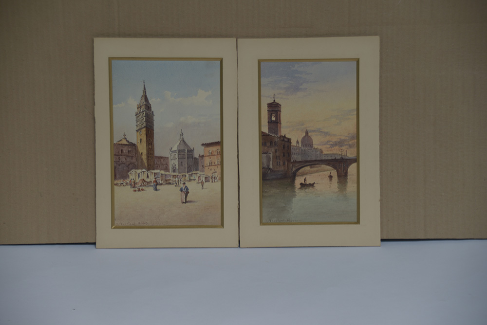 "Veduta di Pistoia " e "Scorcio di Firenze" due acquerelli su carta (cm 24x14)
