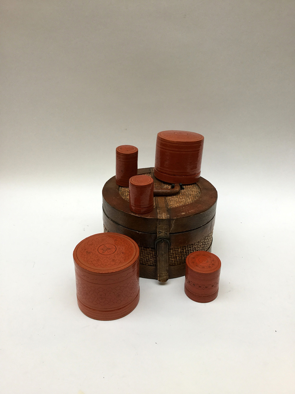 Lotto di scatole varie tra cui una cappelliera e cinque laccate