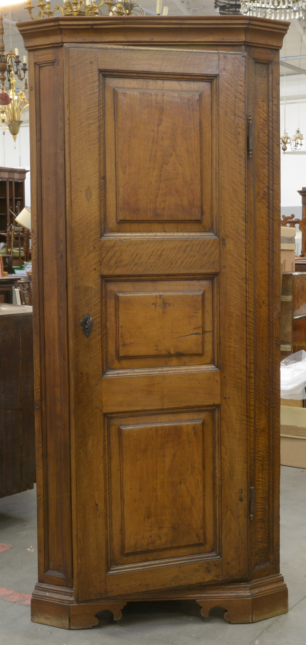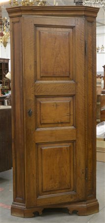 Angoliera in noce ad un anta pannellata e riquadrata, piedi a mensola, secolo XIX (cm 93x204x80) (difetti e restauri)