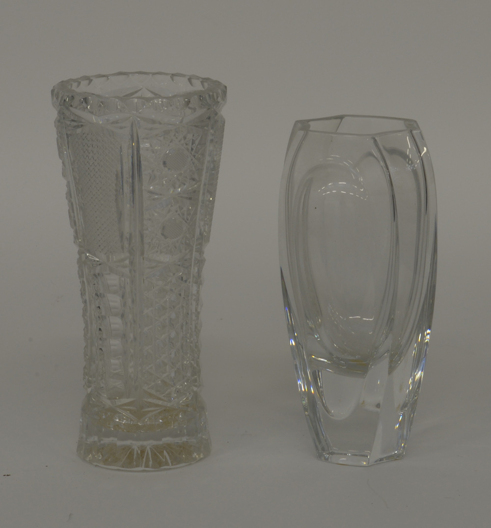 Lotto di un vasetto in cristallo Baccarat ed uno in cristallo molato a motivi stilizzati (difetti)