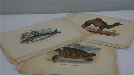 Lotto composto da numerose incisioni a colori del sec. XIX raffiguanti animali