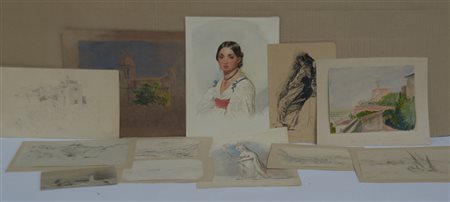 Lotto composto da dodici tra acquerelli e disegni del sec. XIX