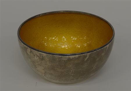 Ciotola in argento a corpo liscio con interno in smalto. Milano, seconda metà secolo XX (gr 230 lordi) (lievi difetti)