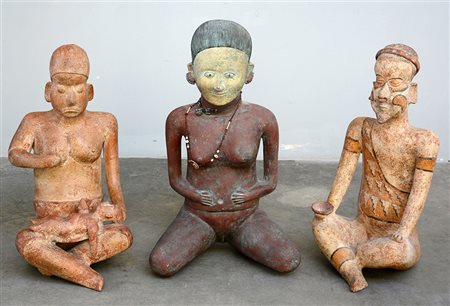 Gruppo di tre sculture in stile pre-colombiano della manifattura "Compania...