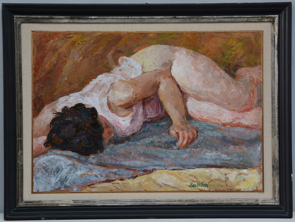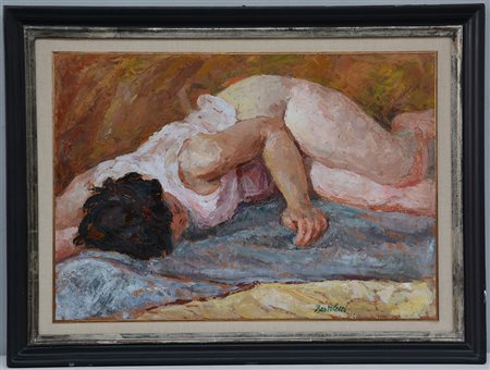 Nino Bertoletti (Roma 1889 - 1971)"Donna sdraiata" olio su cartone (cm...