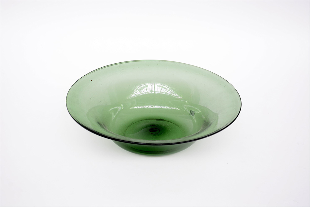 Centrotavola in vetro soffiato verdino. Secolo XX.