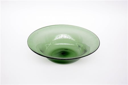 Manifattura di Murano.Centrotavola in vetro soffiato verdino. Secolo XX.