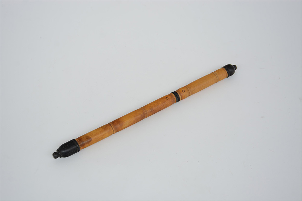 Piccolo bastone in legno di bosso con terminali e riporti in ebano, celante...