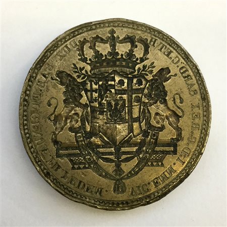 Sigillo reale della Casa Savoia del Re Vittorio Emanuele I. Firmato ed inciso al retro. Opera di Antonio Maria Stagnon (1751-1805). Disegnatore piemontese ed incisore dei sigilli dei Re di Sardegna.Secolo XIX (d cm 5,5) (difetti)