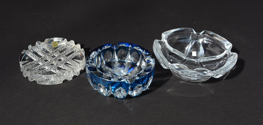 Lotto di tre posacenere in cristallo di fatture differenti (lievi difetti)
