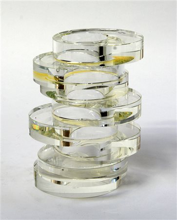 Vaso scultura in rocchi di vetro molato e incollato a freddo della serie "Giants". Manifattura Gaia e Gino, Italia, produzione recente. In scatola originale.