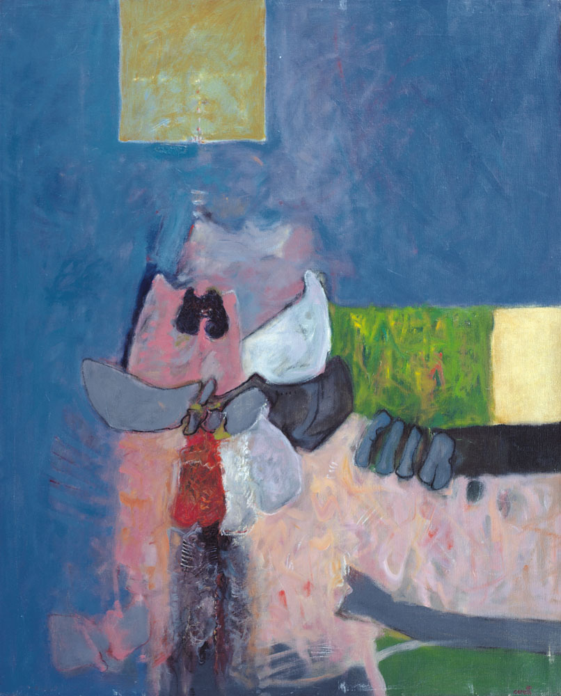 MINO CERETTI Milano 17/02/1930 - Figurazione, 1962, olio su tela cm. 100x81, firma in basso a destra, titolo, firma e anno al retro, presenta un restauro al retro.