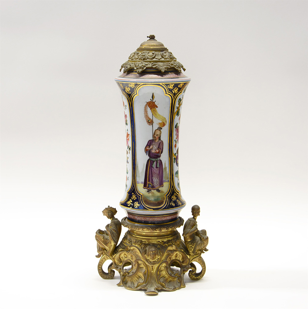 Lampada ad olio con base in metallo dorato. Francia, fine secolo XIX (difetti)