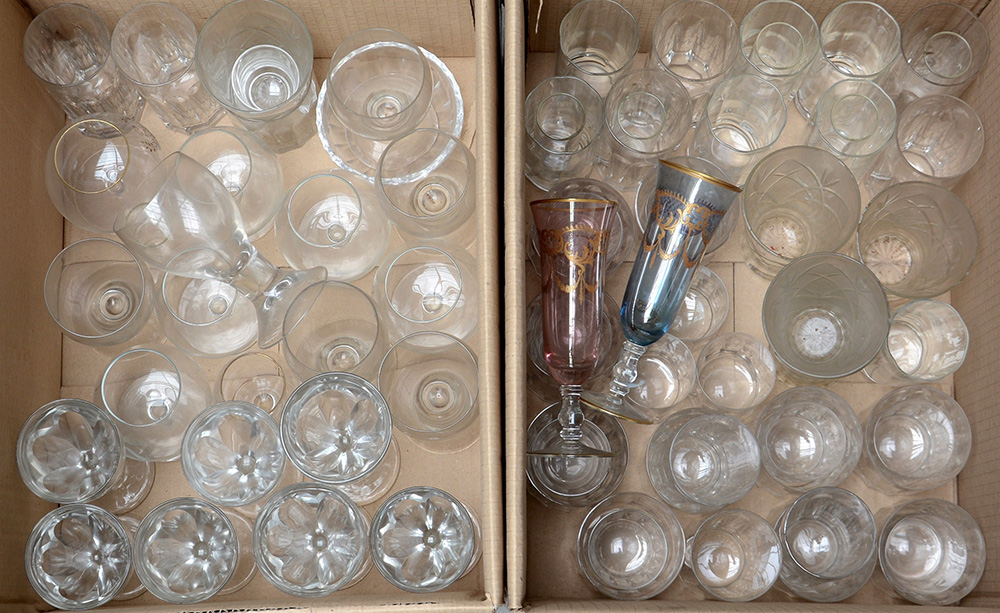 Lotto di due cartoni contenenti numerosi bicchieri (difetti)