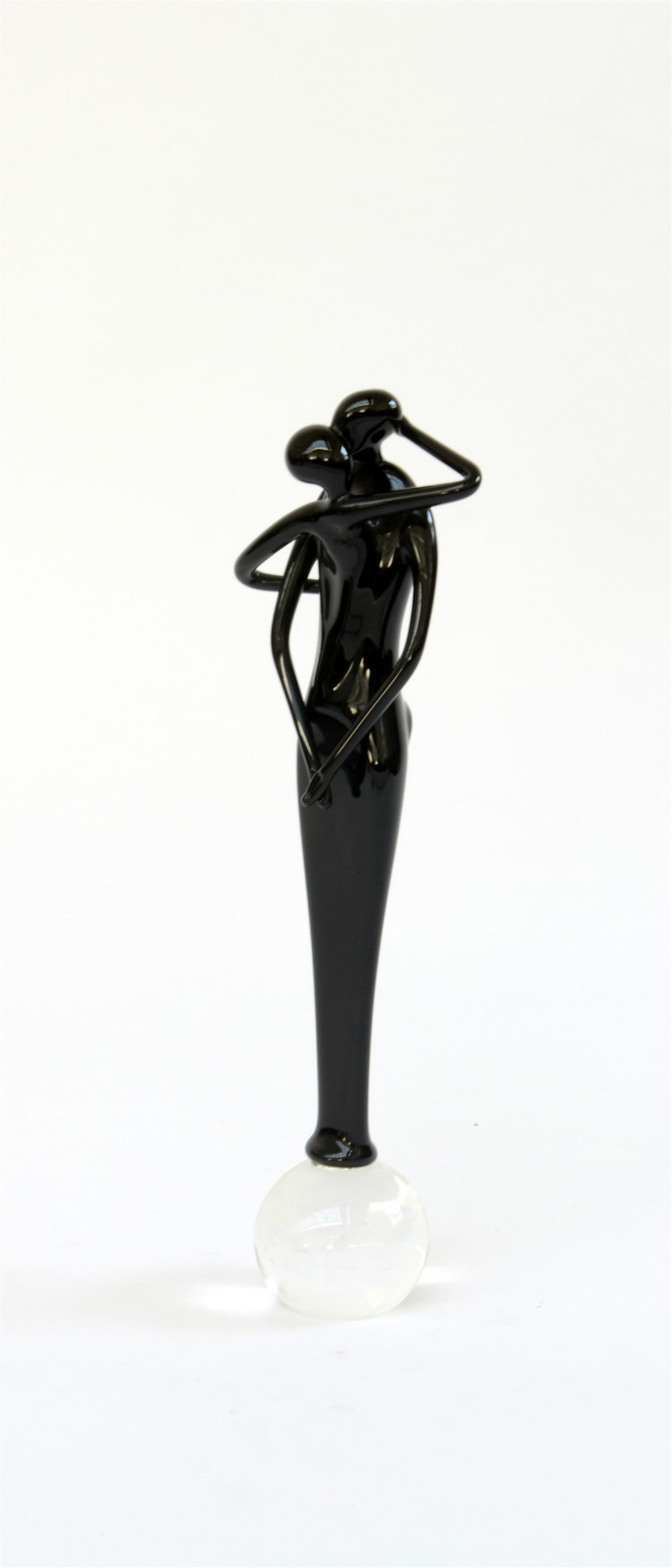 "Abbraccio"Manifattura di Murano.Scultura in vetro soffiato ametista scuro e...
