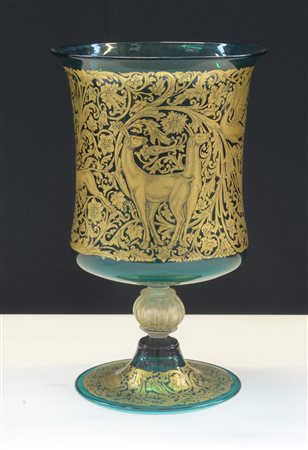 "La caccia A. Salvadori"Manifattura di Murano.Grande vaso in vetro...