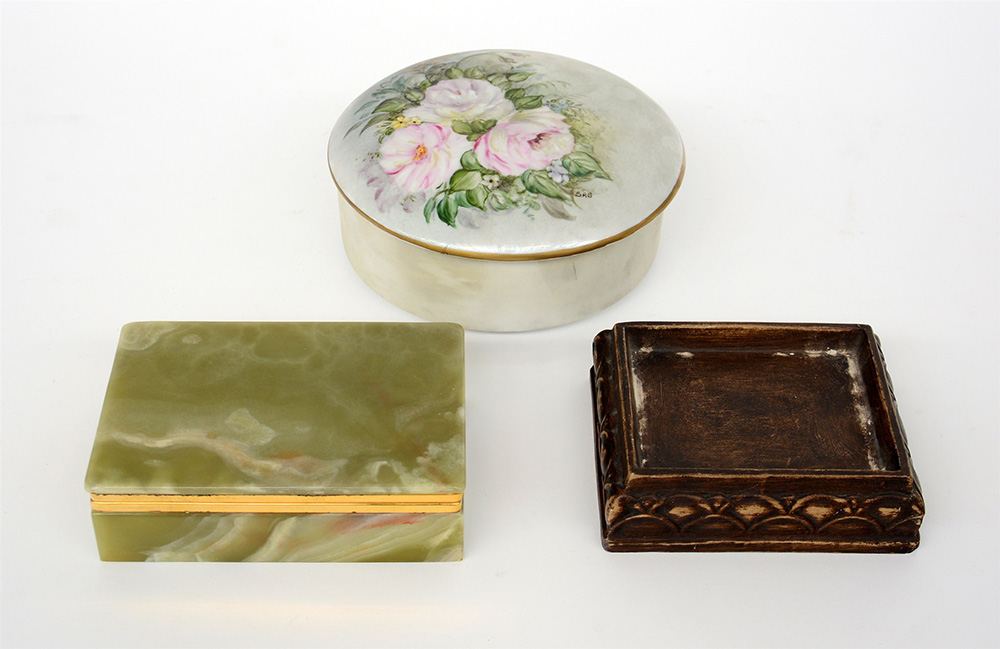 Lotto composto da due scatole con coperchio in porcellana e onice e uno...