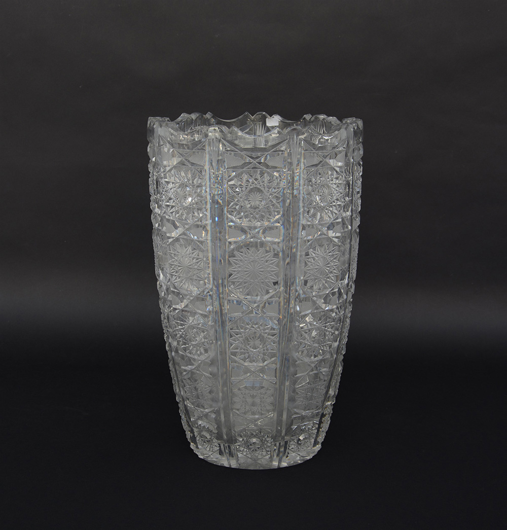 Grande vaso in cristallo molato, metà del secolo XX (h cm 40, d cm 25) (difetti)