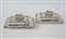 Coppia di legumiere con coperchio in Sheffield decorate a motivi vegetali in rilievo e fiorellini (cm 30x33) (difetti)