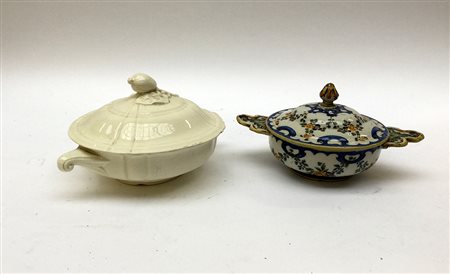 Lotto composto da due piccole zuppiere di cui una bianca in terraglia e...