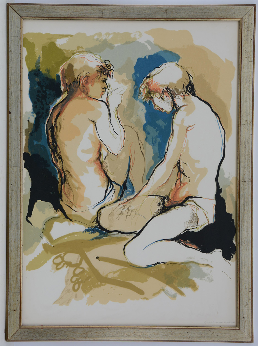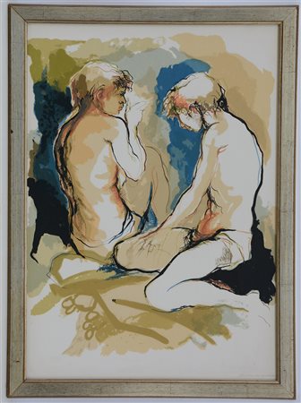 "Figure" litografia a colori (cm 70x49) firmata in basso a destra, etichetta al verso della Galleria Pancheri di Rovereto. In cornice (lievi difetti)